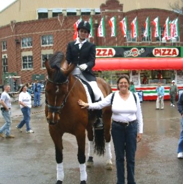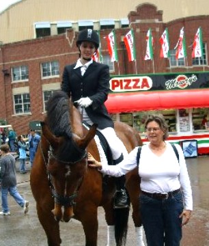 The owner Bonnie rides saddleseat with him.