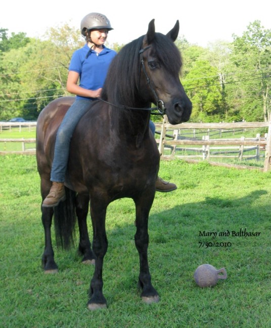 Hi Fredericka,Here are a few pictures of Mary riding Balthasar tonight.  I like