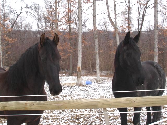 Von Leven GG# 238 -Friesian Georgian Grande Koning X FWF Beautiful Doll-Saddlebred.  The other horse is
