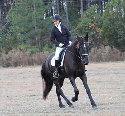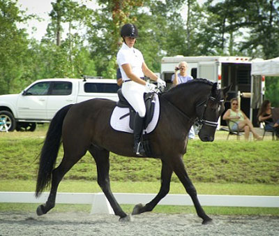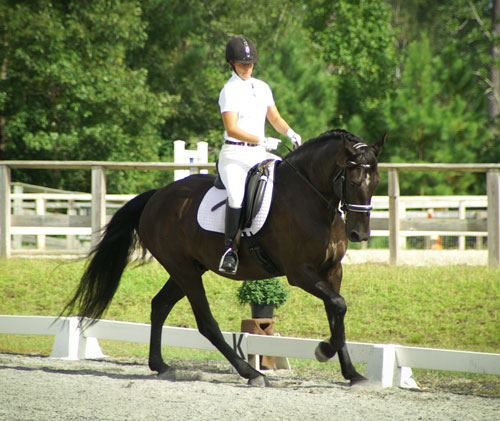 We competed in three shows this past fall, rode in several clinics, and have trained regularly with my trainer. She is absolutely in love with Aragorn and feels that he has unlimited potential! He puts 100% into all of his work. He truly was bred for dressage and absolutely LOVES it! In fact, lateral work is his favorite so far! He instantly softens, collects, and tries harder as soon as I began asking for any lateral work.