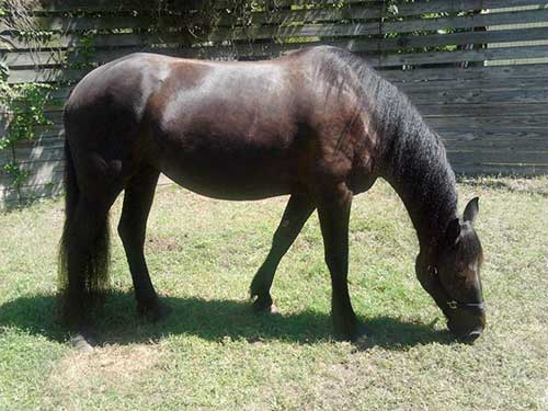 These two are actually lighter when their a little dirty.  I guess the dirt makes the coat look lighter (almost brown).  I'll attach some pictures of Kit (Princess Kiyana) after being brushed and combed, but before being rinsed off (which is where the rest of the dirt gets removed).  The pictures of Val (Baronness Von Vashti) are after being combed brushed, rinsed and dried.  You can see that before the rinsing Kit looks lighter than Val.  They are both a beautiful bronze aftwards, but I didn't think of getting a picture of Kit afterwards.  In another 6 weeks they'll be working their way back to being black again. They're lovely no matter what color they happen to be and I enjoy having the variation even if I am a bit more partial to the bronze look :)  I'll also include a picture of Kit after she'd knocked some flowers off a tree into her mane.  The joke was that  she'd put flowers in her hair :))