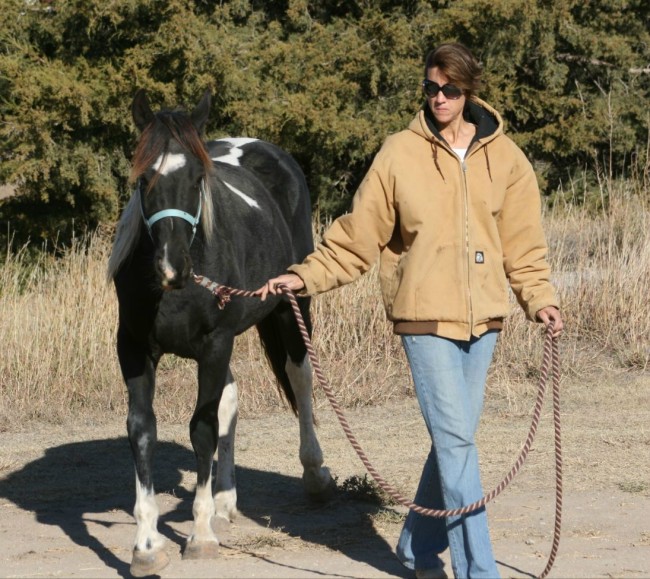 the tobiano 2-year old colt is doing very, very well. He is happy as