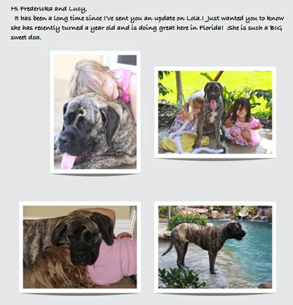 update on Lola. She is doing great. Has gained about 13 pounds,