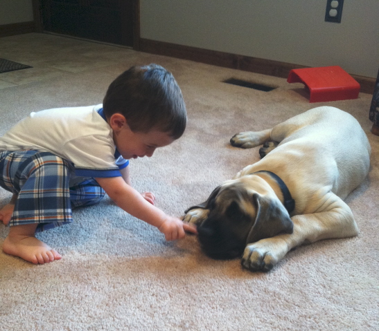 almost up to 90 pounds at 5 1/2 months old! We just completed