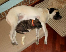:-) Bandit is 100% smitten with her big sister Hero, and Hero for