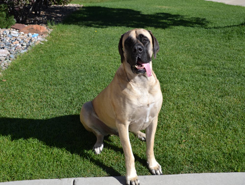 Thought you might like this photo (attachment) of Dozer (5 1/2 months old +/-85lbs). True AMERICAN Mastiff (with the flag).