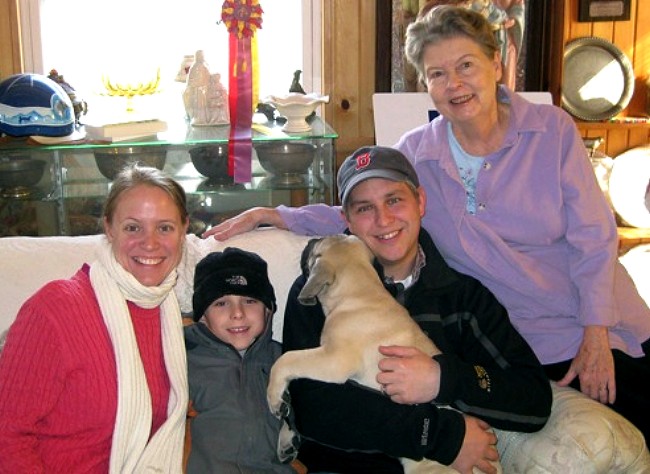 to right; Ellen, Zack, Keith (Isabelle, the puppy) and Fredericka