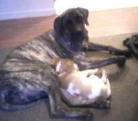 Here is a picture of Raisin and her new best friend Peanut. Peanut