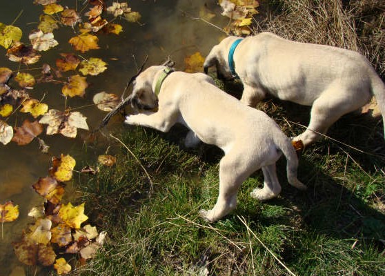 'Shine and Bella; Both dogs turned a year old in August. 'Shine's