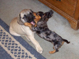 protective of the dachshund and they play all day. (She runs circles