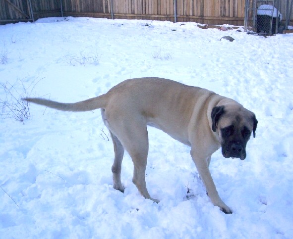 the snow. Tatanka loves the snow: I have to drag him inside even