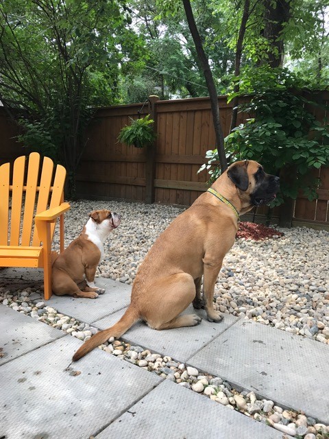 our English Bulldog, and Piper always greets